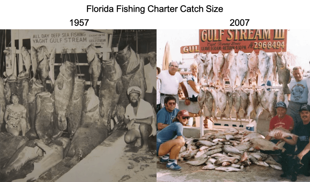Shifting baseline syndrome: seen dramatically in the reduction of catch size of Florida fishing charters over 50 years